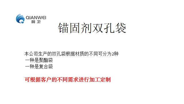 您现在所在的位置:卡扣厂家>新闻资讯>行业新闻>湖北锚固剂双孔袋的分类与用途